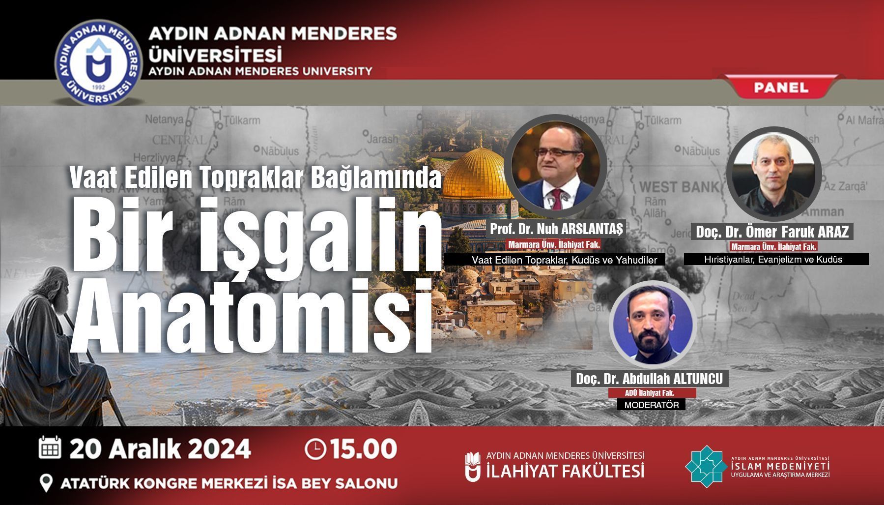 Aydın Adnan Menderes Üniversitesi İslam Medeniyeti Uygulama ve Araştırma Merkezi (İSMAM) ile İlahiyat Fakültesi iş birliğinde düzenlenen “Vaat Edilen Topraklar Bağlamında Bir İşgalin Anatomisi” başlıklı panel gerçekleştirildi.
