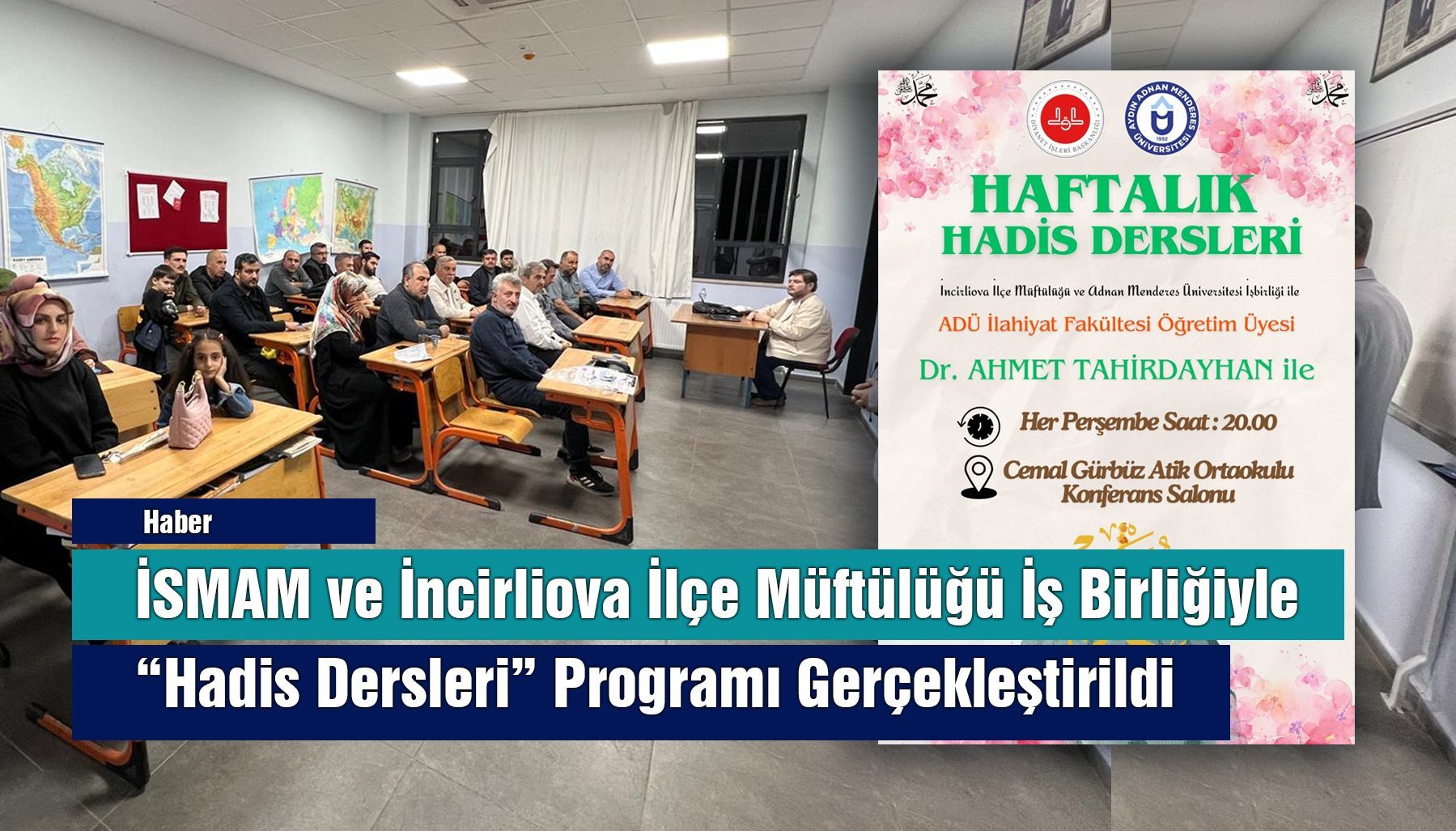 Aydın Adnan Menderes Üniversitesi İslam Medeniyeti Uygulama ve Araştırma Merkezi (İSMAM) ile İncirliova İlçe Müftülüğü iş birliğinde düzenlenen “Hadis Dersleri” programı tamamlandı.