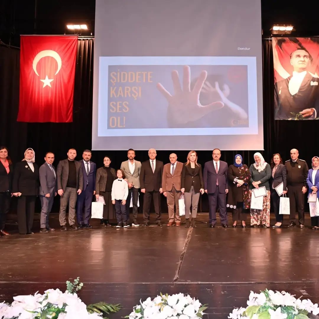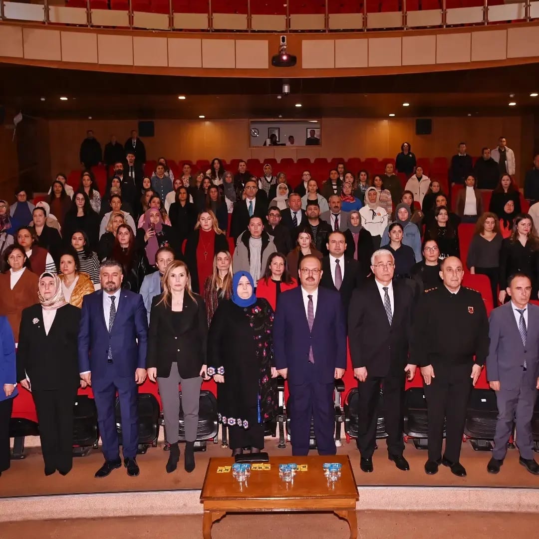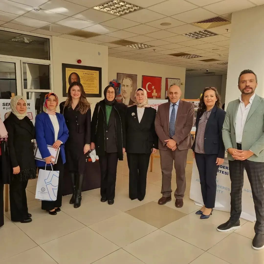 ''25 Kasım Kadına Yönelik Şiddete Karşı Uluslararası Mücadele Günü"nde toplumsal farkındalığın artırılması amacıyla Aydın Adnan Menderes Üniversitesi Kadın ve Aile Çalışmaları Uygulama ve Araştırma Merkezi Müdürlüğü, Aile ve Sosyal Hizmetler İl Müdürlüğü ve KADEM Aydın Temsilciliği iş birliği ile düzenlenen Kadına Yönelik Şiddetle Uluslararası Mücadele ve Dayanışma Günü Paneli, 27 Kasım 2023 tarihinde Aydın Kültür Merkezi Dr. Hidayet Sayın Sahnesi’nde gerçekleşti.