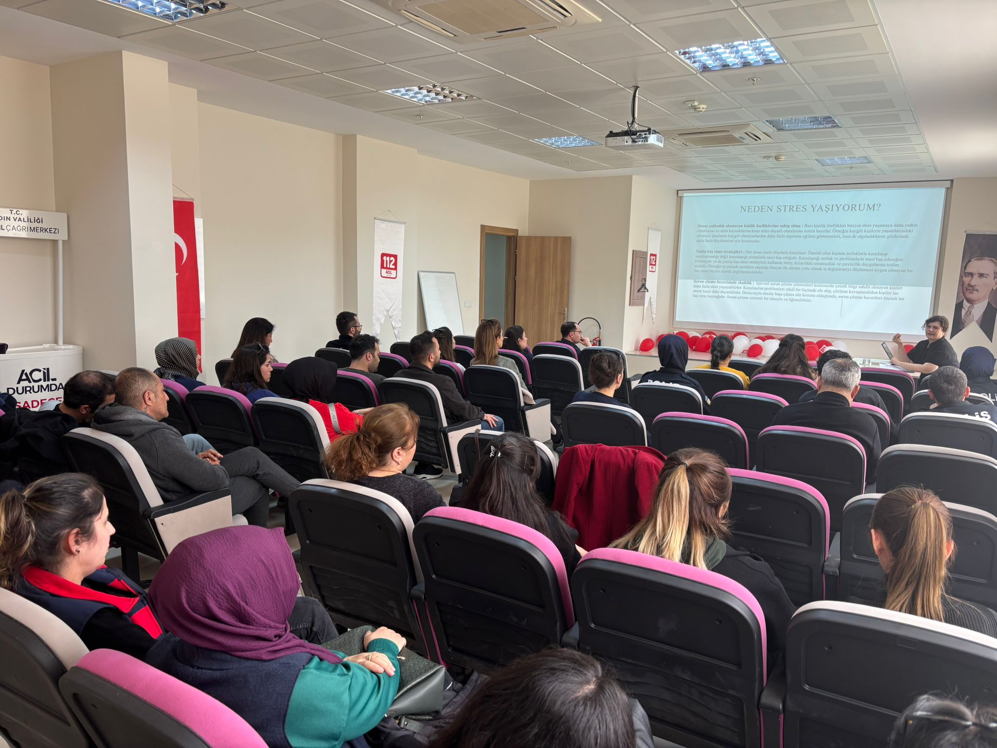 Merkezimizde görev yapan Klinik Psikolog Elif Nur AKIN tarafından, 23–24 Mart 2026 tarihlerinde 112 Acil Çağrı Merkezi personeline yönelik ““Stres İle Başa Çıkma Yolları” konulu eğitim programı gerçekleştirilmiştir.