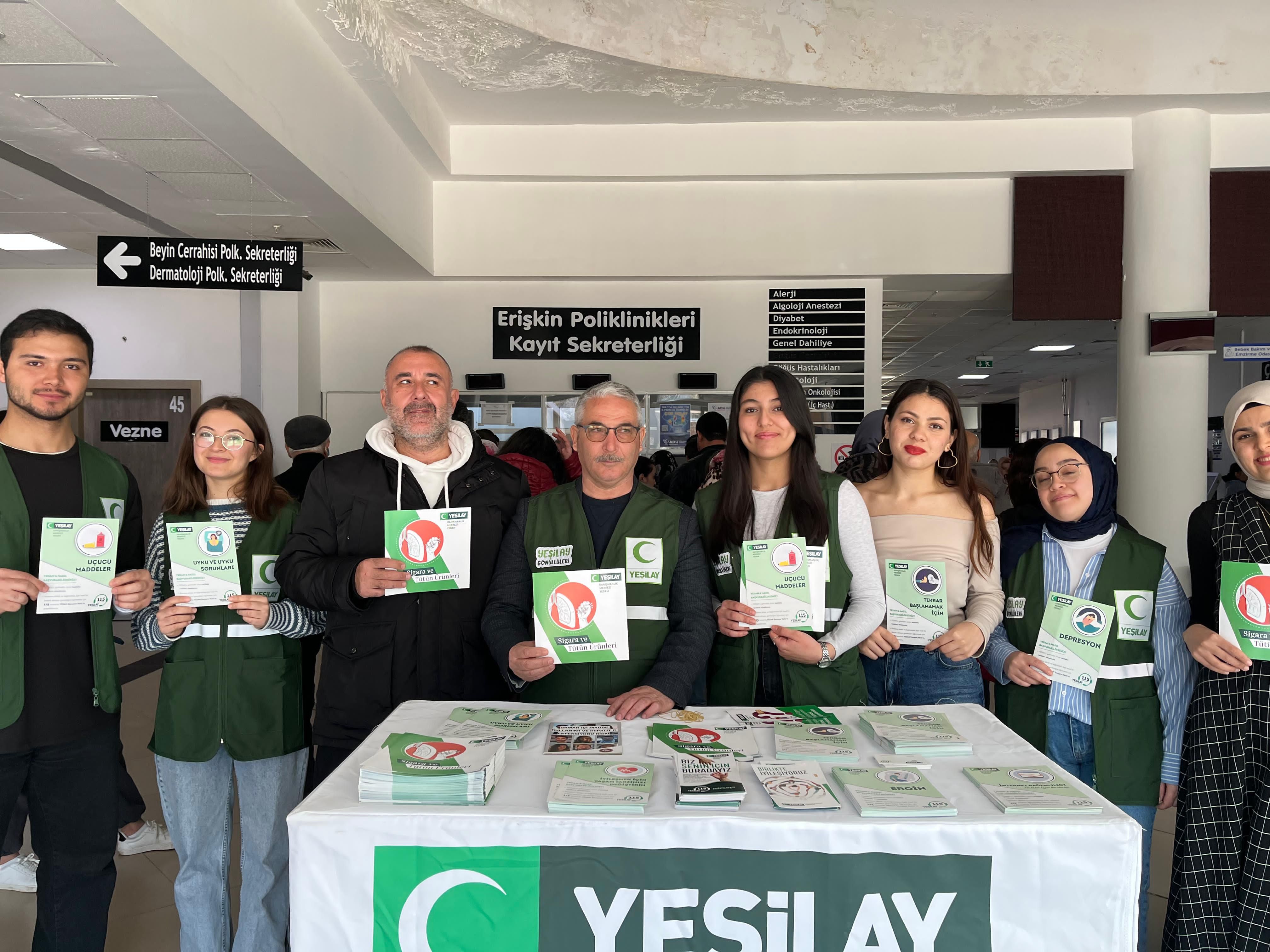 Merkezimiz Bağımlılık Birimi tarafından 11 Şubat 2025 Salı günü Üniversitemiz Tıp Fakültesi Hastanesi' nde, hastane personeli ve hastaneye gelen vatandaşlara yönelik olarak "Yeşilay Sigara ve Tütün Ürünleri Broşürü" dağıtımı yapıldı ve sigarayı bırakmayla ilgili farkındalık oluşturulmaya çalışıldı.
