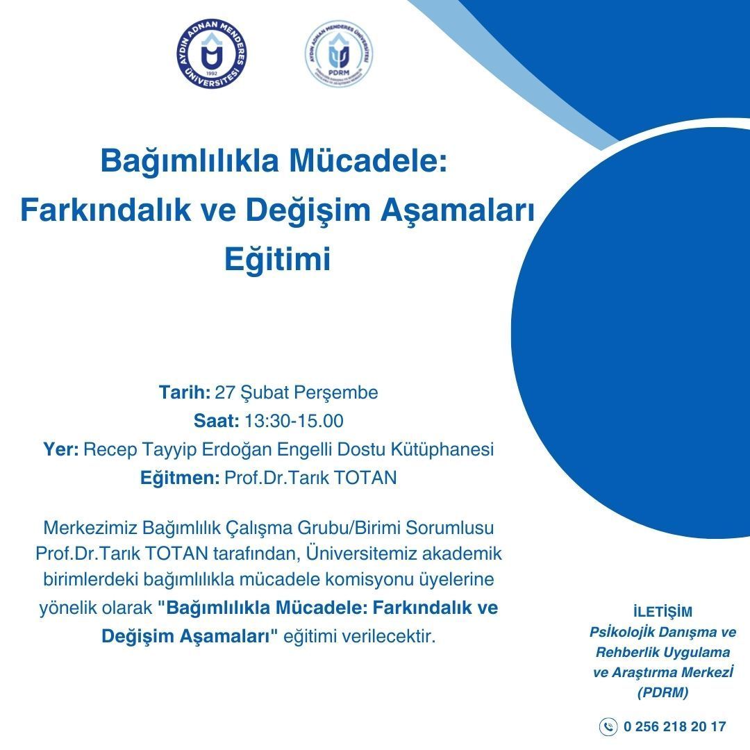 Eğitim, PDRM Bağımlılık Çalışma Grubu/Birimi Sorumlusu Prof. Dr. Tarık Totan tarafından Üniversitemiz akademik birimlerindeki bağımlılıkla mücadele komisyonu üyelerine yönelik olarak verildi. Eğitimde, bağımlılıkla mücadelede farkındalık yaratma ve bu süreçte izlenecek değişim aşamaları üzerine kapsamlı bilgiler paylaşıldı. Prof. Dr. Tarık Totan, katılımcılara bağımlılıkla mücadelede etkili stratejiler ve önleme yöntemleri hakkında sunum gerçekleştirdi.