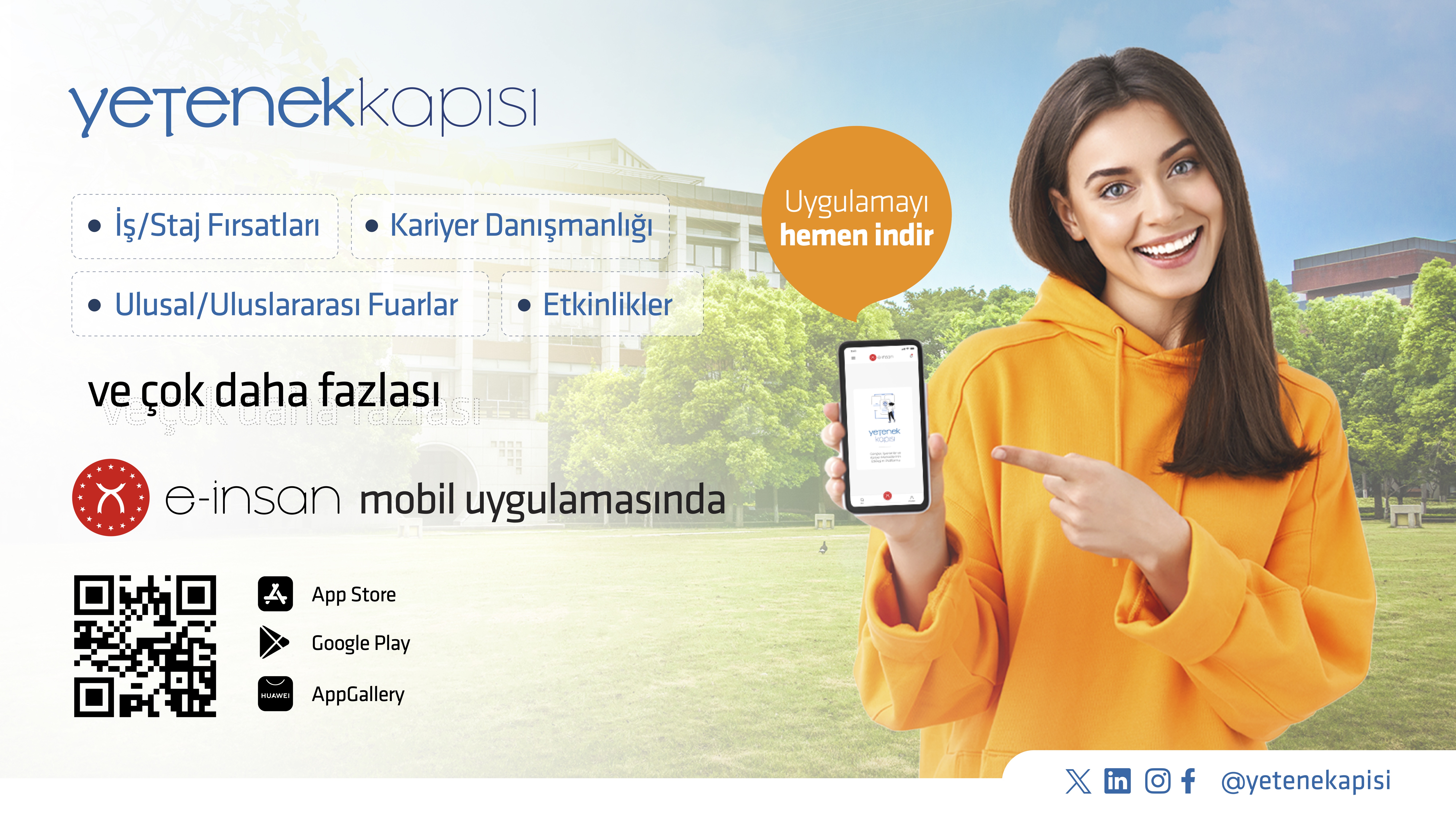 Cumhurbaşkanlığı İnsan Kaynakları Ofisi tarafından geliştirilen,Ulusal Staj Programı, Kariyer Kapısı, Yetenek Kapısı ve YTNK TV gibi eğitim ve iş hayatına dair üretilen kariyer hizmetlerinin bütünleşik olarak sunulduğu e-insan platformuyla hizmetinize sunulmaktadır.