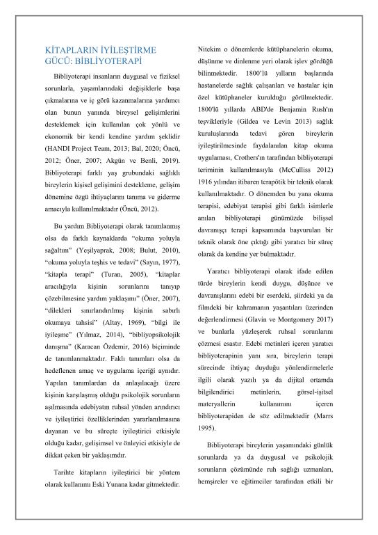 Haftanın Yazısı; Bibliyoterapi
