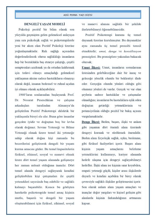 Haftanın Yazısı "Pozitif Psikoterapilerde Denge Modeli"