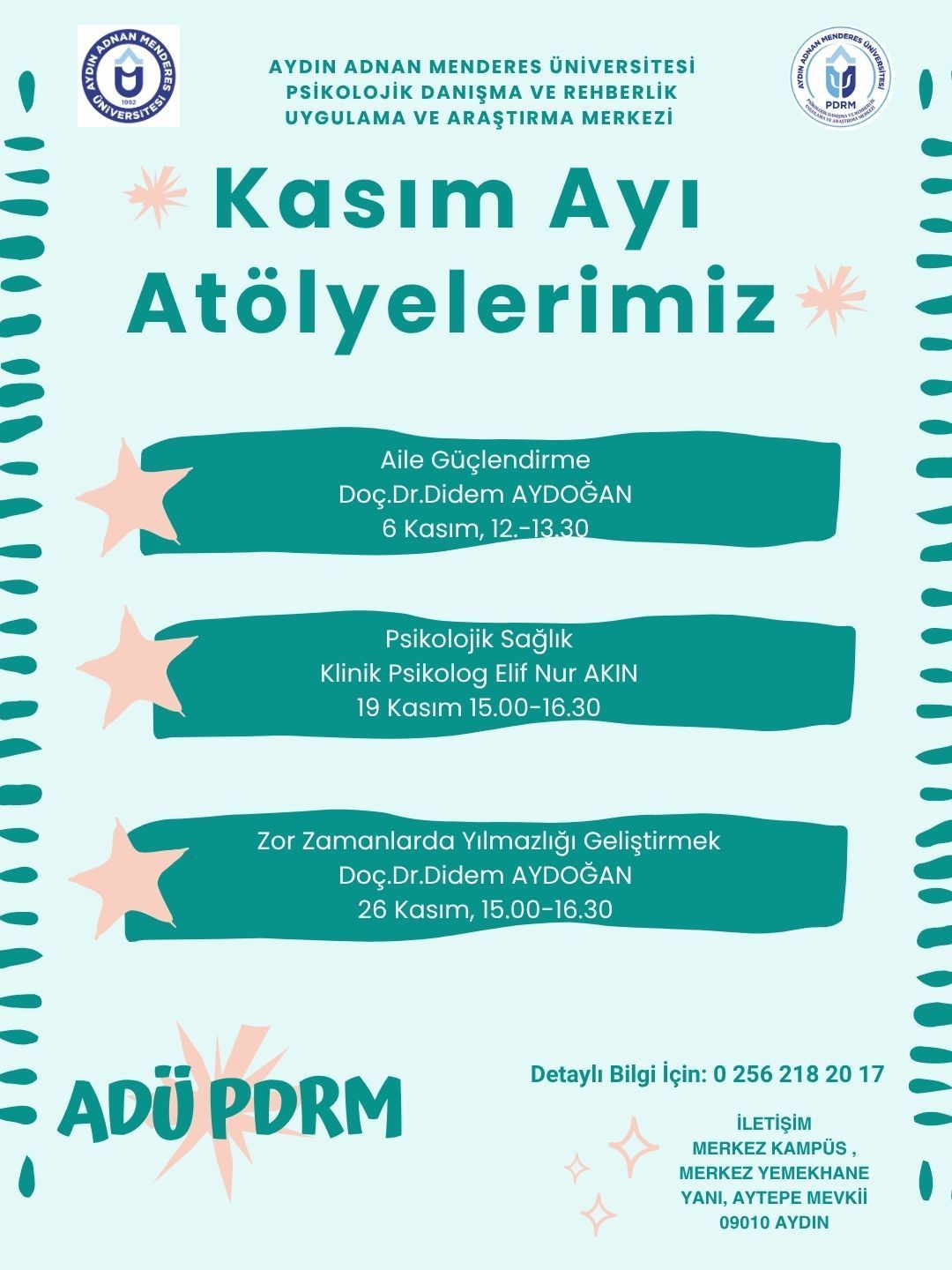 Aile bağlarını güçlendirmek, psikolojik sağlığımızı desteklemek ve zor zamanlarda daha dirençli olmak için, Atölye Çalışmalarına bekleriz!