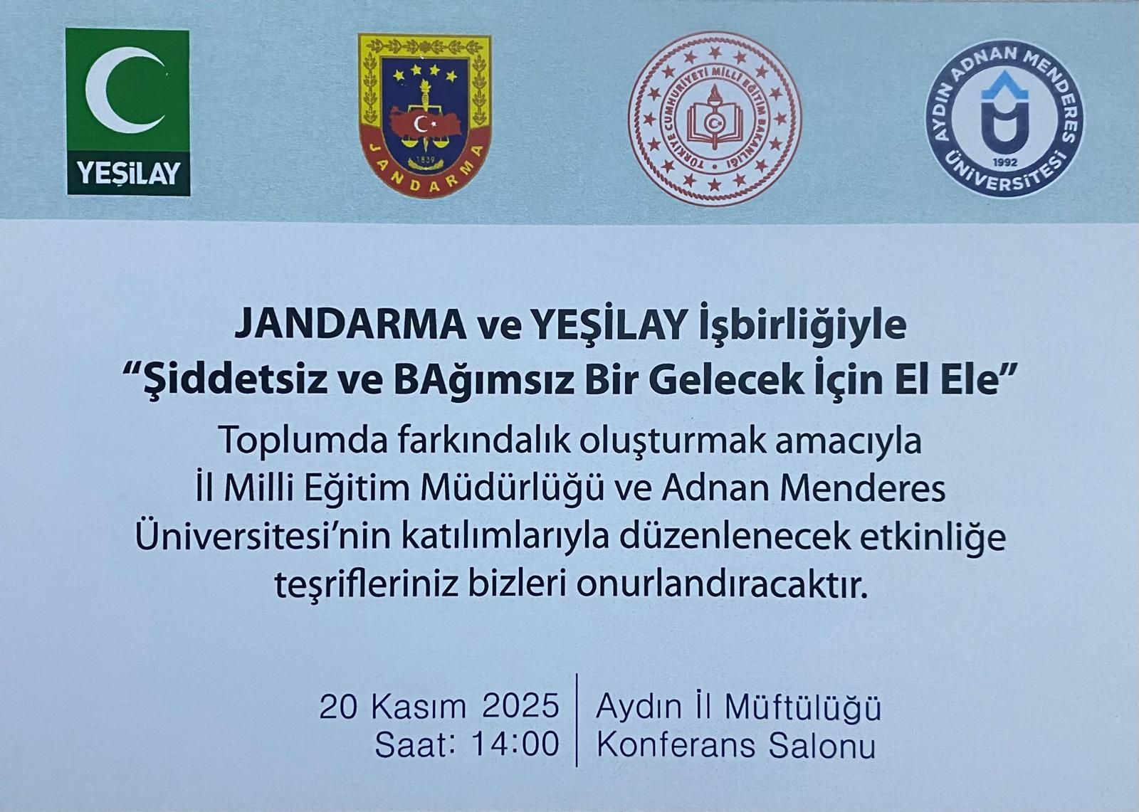 Üniversitemiz, Aydın İl Jandarma Komutanlığı ve Aydın YEŞİLAY İşbirliğiyle: "Şiddetsiz ve Bağımsız Bir Gelecek İçin El Ele"