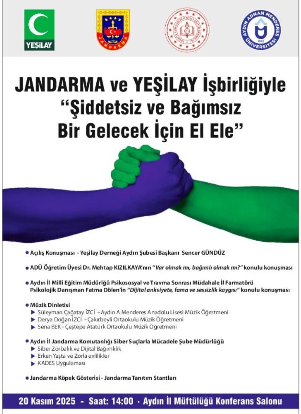 Üniversitemiz, Aydın İl Jandarma Komutanlığı ve Aydın YEŞİLAY İşbirliğiyle: "Şiddetsiz ve Bağımsız Bir Gelecek İçin El Ele"