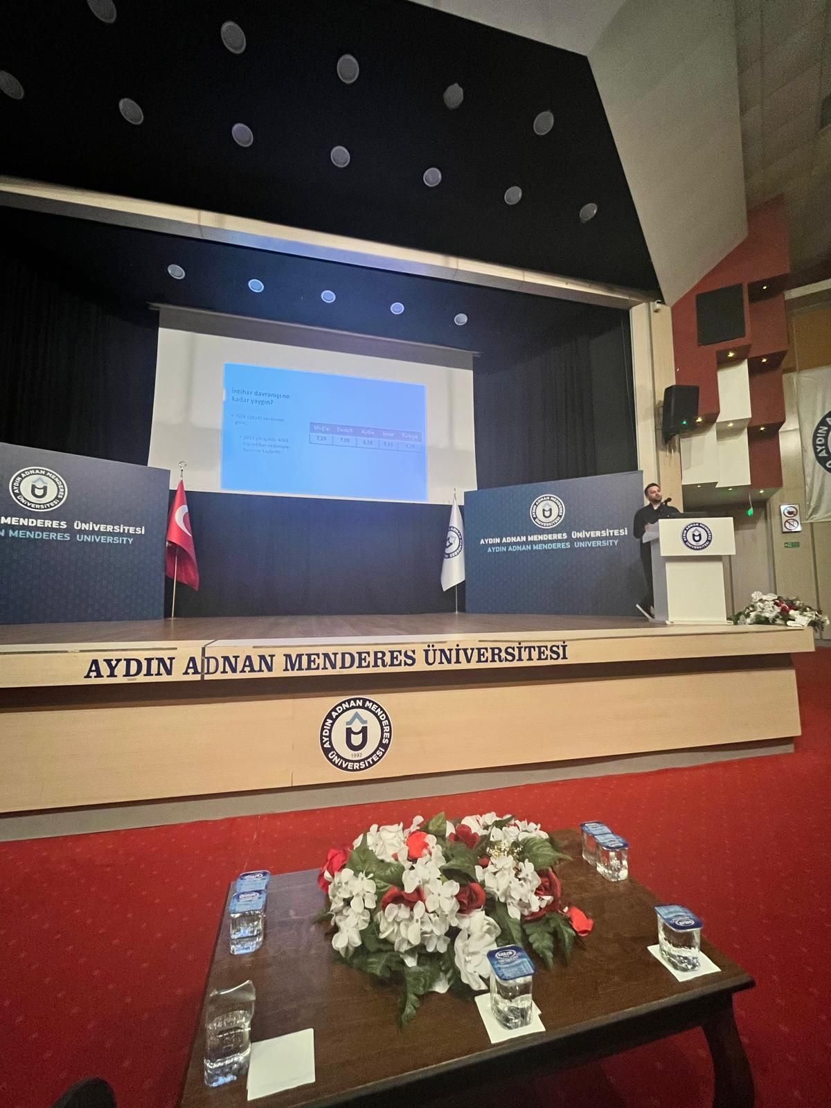 Merkezimiz tarafından 17 Nisan 2025 Perşembe günü 13.30’ da Atatürk Kongre Merkezi, İsa Bey Salonu’ nda, İnsan ve Toplum Bilimleri Fakültesi Öğretim Üyesi ve Merkezimiz Travma ve Krize Müdahale Birim Sorumlusu Dr.Öğretim Üyesi Tolga KÖSKÜN tarafından “İntiharı Anlamak: Gerçekler ve Mitler” konulu seminer gerçekleştirildi. Seminerde intihar hakkında bilgiler, intihara ilişkin risk faktörleri ve koruyucu faktörler, intihar eğilimi olan bireyle kurulan iletişimde dikkat edilmesi gereken unsurlar, intiharla ilgili yanlış bilinen unsurlar ve intiharı önlemeye yönelik neler yapılabileceği konuşuldu. Seminer, katılımcıların da dahil olduğu soru-cevap ve Merkez Müdürü Doç.Dr.Didem AYDOĞAN’ ın Dr.Öğretim Üyesi Tolga KÖSKÜN’ e katkılarından dolayı teşekkür belgesini takdim etmesinin ardından sona erdi.