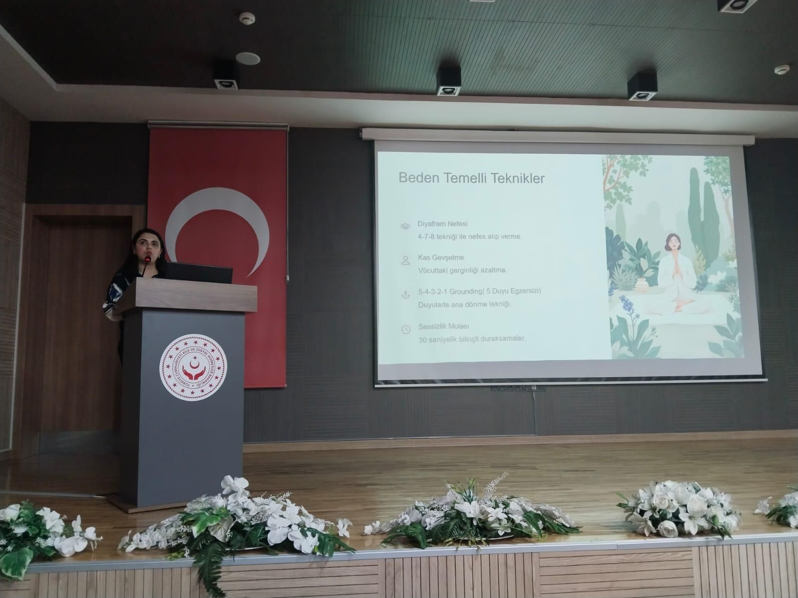 Merkezimizde görevli Psikolojik Danışman Esma Nur KIRANTA tarafından 14 Nisan 2025 tarihinde Aydın Aile ve Sosyal Hizmetler İl MüdürlüÄŸü 97 meslek elemanına yönelik eÄŸiticilerin eÄŸitimi kapsamında "Sessiz Güç: Duyguların RehberliÄŸinde Öfke Kontrolü" verildi. EÄŸitimde ; öfke nedir, öfkenin belirtileri, iÅŸ yerindeki öfkenin sebepleri, öfkeyi tetikleyen düÅŸünce kalıpları, duygusal farkındalık, öfke yönetimi, beden temelli teknikler, bilinçli yanıt vermek, zihinsel dayanıklılık geliÅŸtirmek, iletiÅŸimde öfkeyi yönetmek baÅŸlıklarına deÄŸinilip uygulamalar yapıldı. Günlük yaÅŸamımızda ve çalışma hayatında öfkemizi nasıl yönetebiliriz? sorusuna cevap verildi . Gelen soruların cevaplanması ve katılım belgelerinin takdimi ile eÄŸitim sona erdi.
