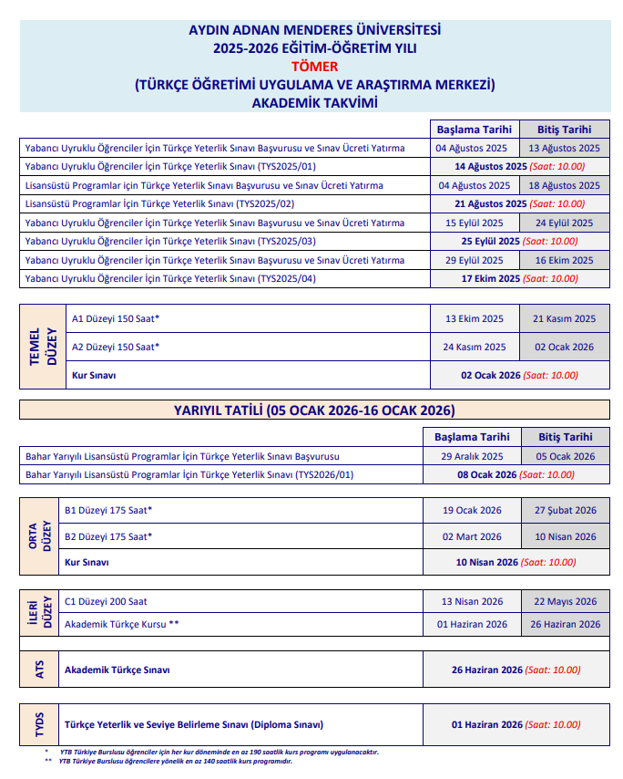 2025-2026 YILI AKADEMİK TAKVİMİ / ACADEMIC CALENDAR