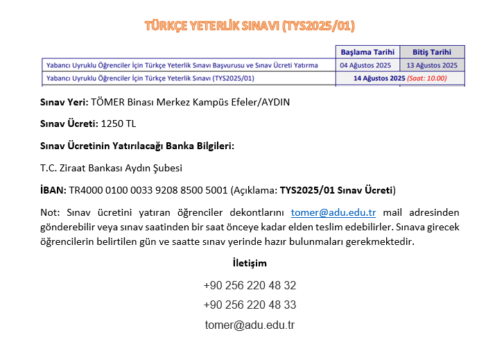 TÜRKÇE YETERLİK SINAVI (TYS2025/01) 14 AĞUSTOS'TA